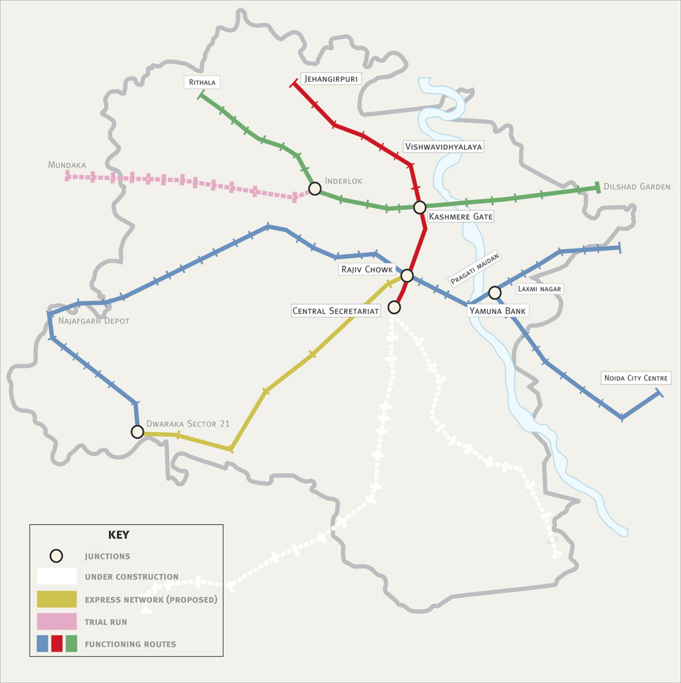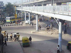 | Right hand turn leading from New Patparganj Road to metro station closed. Pedestrians have to walk extra distance to reach the station. | |